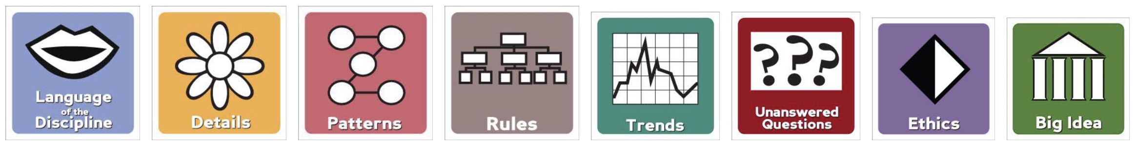 However, the icons do not need to be taught in a certain order, all at once, or within specific lessons. The icons should be thought of as a lens of learning that will activate learning of content using higher-level thinking skills.
